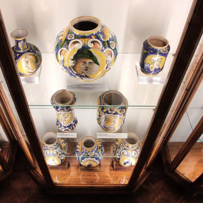 The Pottery Room displays a series of artistically decorated medicinal containers, the result of a long specialised tradition in which Italian craftsmen have been at the forefront ever since the Renaissance.