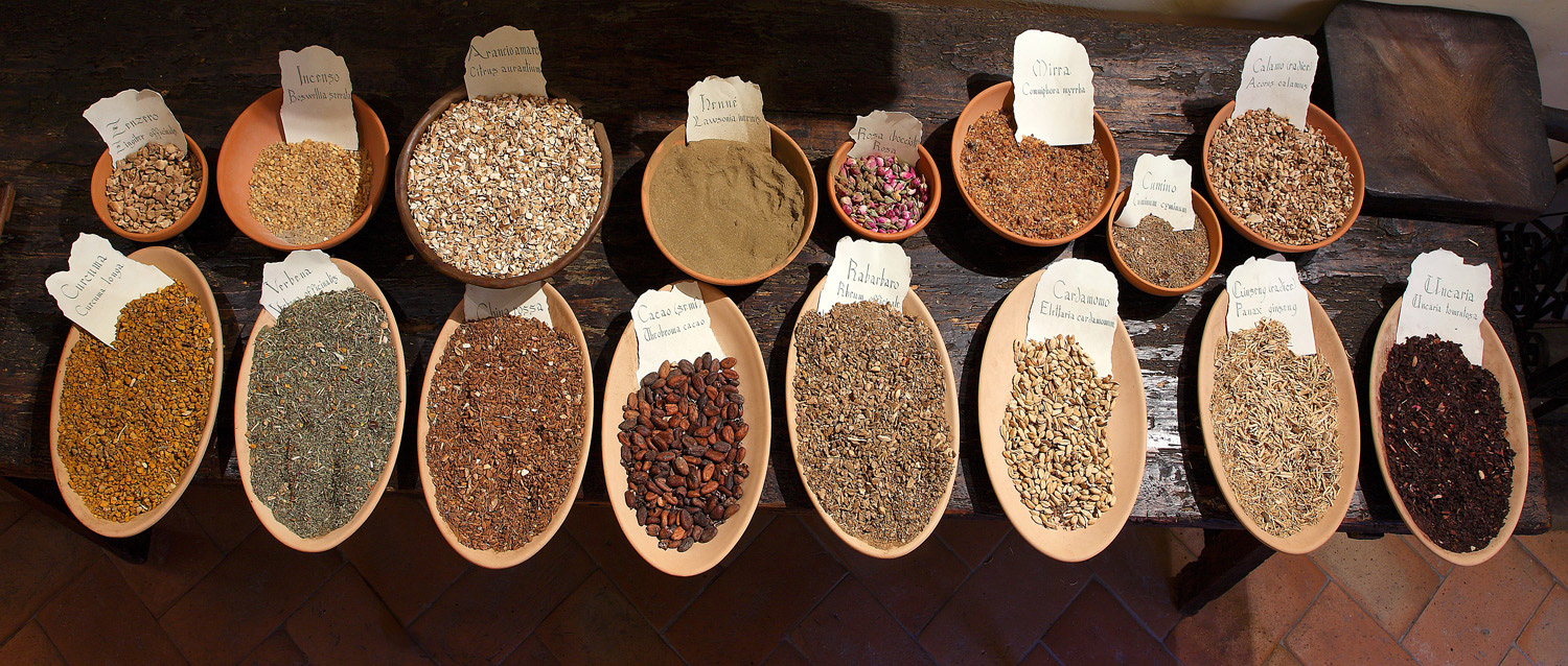 Il saper raccogliere, trasformare ed impiegare le erbe per curare era un patrimonio di conoscenze che, trasmesso per via orale, dava ricchezza e potere alla guaritrice o al guaritore. Uno dei segreti più gelosamente custoditi riguardava i luoghi, i tempi, le tecniche di raccolta -spesso rituali- delle erbe più attive contro le specifiche malattie. Era questa una virtù che, pur esercitandosi in ambiti marginali, fin dal VI secolo venne combattuta dagli organi del potere, quando l’aspetto rituale assunse connotati esasperati. Addirittura, alcune guaritrici finirono per essere considerate “streghe” durante il periodo dell’Inquisizione. Il ruolo delle erbe medicinali, comunque, si è mantenuto vivo in ogni tradizione locale, ed è stato fondamentale per la salute dell’uomo fino ad oggi, malgrado l’“uso scientifico” ne abbia sminuito le peculiari caratteristiche di naturalità.
